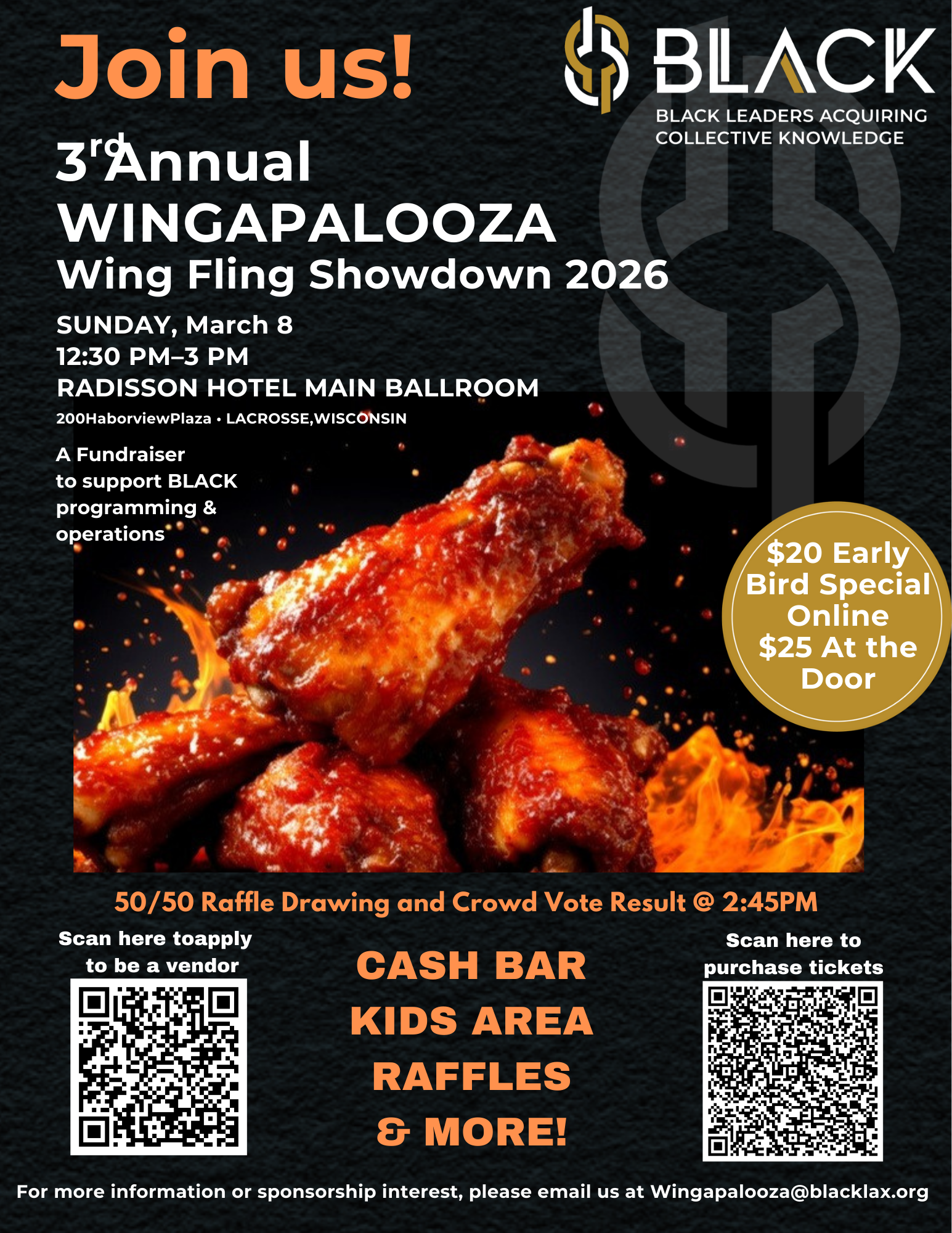 This is our main annual fundraiser. All proceeds go to support Black Leaders Acquiring Collective Knowledge Inc. programming and operations. BLACK, a registered 501(c)3 nonprofit, works to empower and elevate the Greater La Crosse Black Community through innovative leadership, education, and advocacy. Our vision is to develop a sustainable community where Black people can heal, live authentically, feel safe, and have real access to opportunities. While we center Black youth and families in our mission, our programs are utilized by all races, ages, and professions.